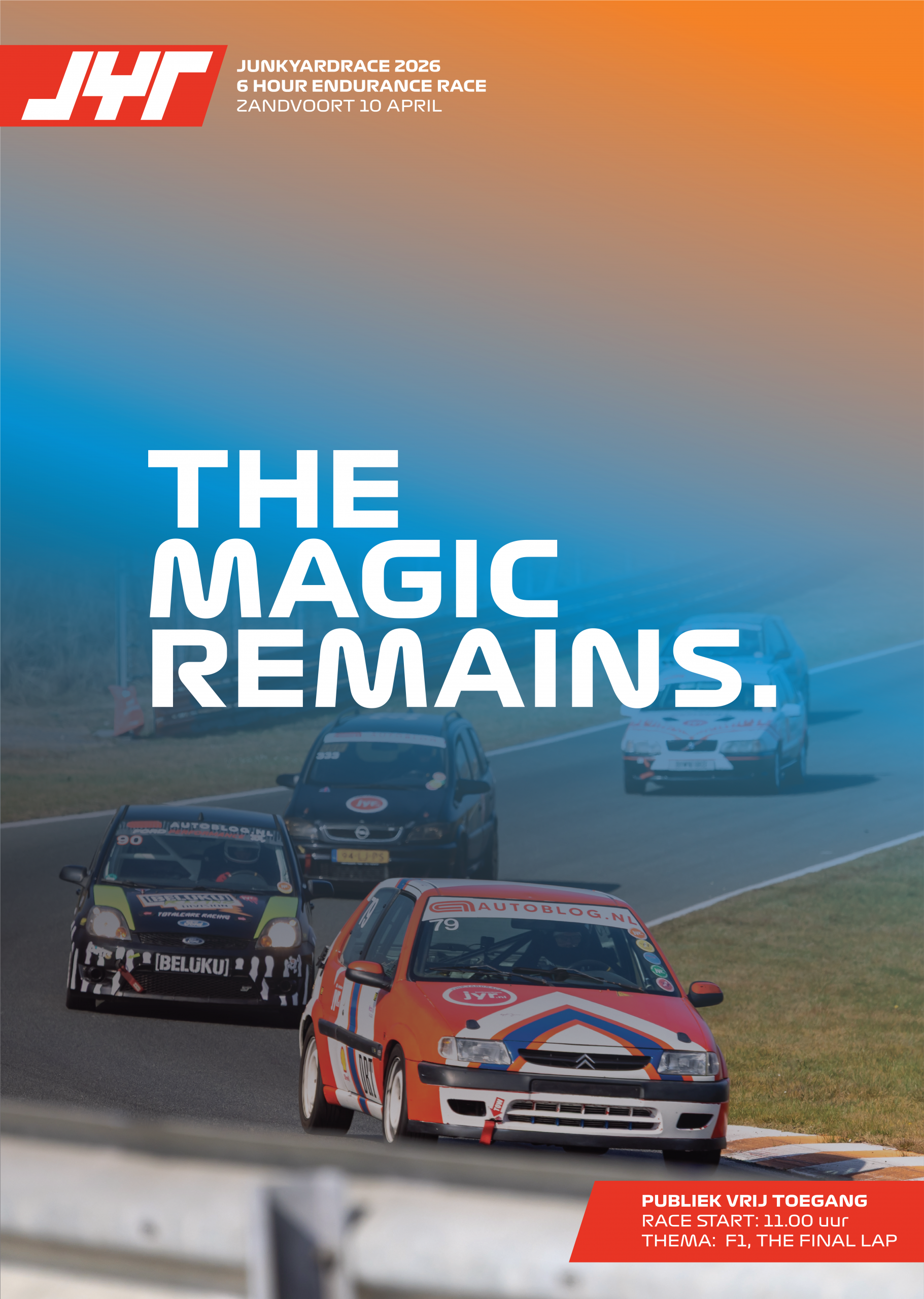 Altijd al willen racen op een circuit met je eigen auto maar lijken al die officiele races jou te duur en te serieus? Dan is de Junkyardrace precies iets voor jou! Koop een barrel van maximaal €750 en doe mee aan de Junkyardrace. Een ééndaagse endurance race waar gezelligheid en veiligheid voorop staan. Een geldig rijbewijs is voldoende, geen racelicentie nodig.